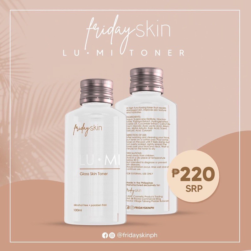 Friday Skin LuMi Toner - retails at 220php